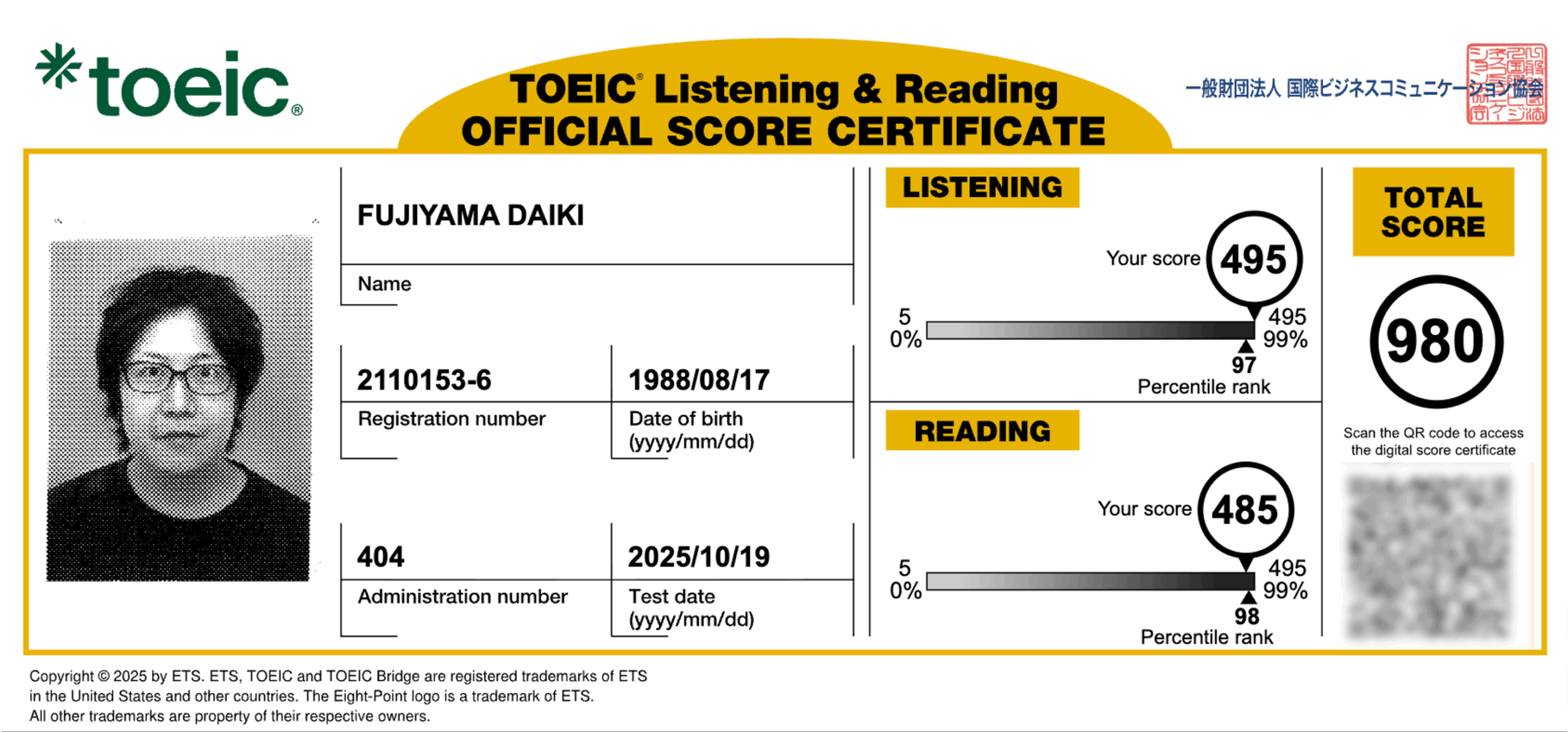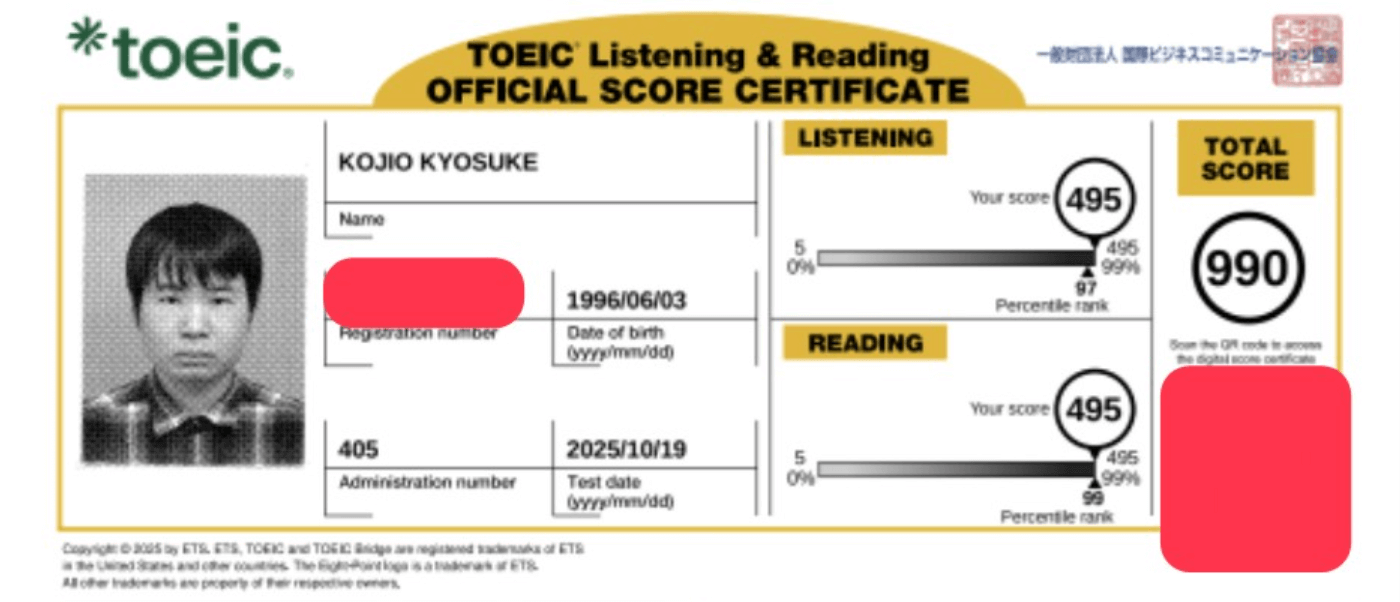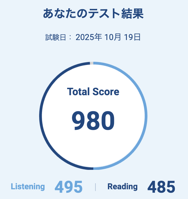 第404・405回TOEIC(2025年10月19日)の結果が出ました