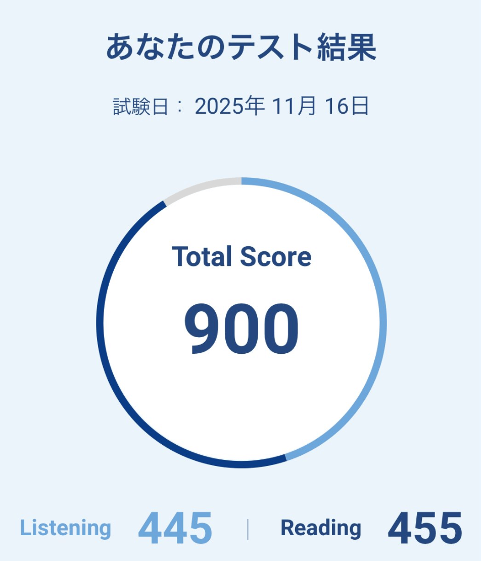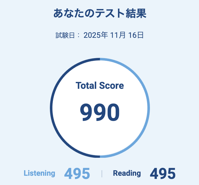 第406・407回TOEIC(2025年11月16日)の結果が出ました